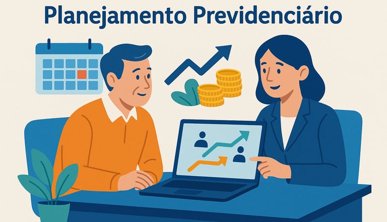 Planejamento previdenciário individualizado, com simulação de cenários e avaliação das suas contribuições.